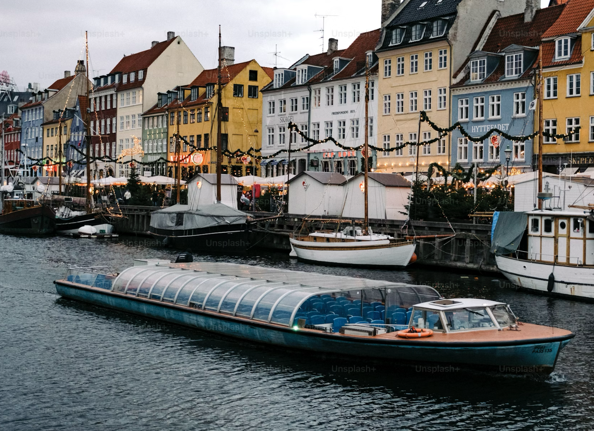 Rett utenfor Apollo Bar går vi om bord i en privat kanalbåt. Turen fra Nyhavn til Refshaleøen tar cirka 60 minutter. Vi sørger for drikke underveis mens vi nyter utsikten over København fra vannet. For deg som ikke er like glad i båt som Stine, er det også lov å ta taxi som tar ca. 10 minutter.